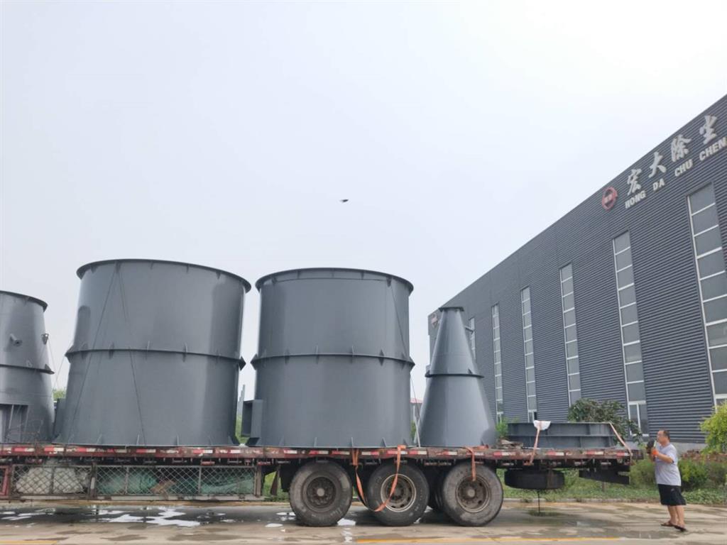 旋風除塵器是除塵裝置的一類。除塵機理是使含塵氣流作旋轉運動,借助于離心力將塵粒從氣流中分離并捕集于器壁,再借助重力作用使塵粒落入灰斗。旋風除塵器的各個部件都有標準的尺寸比例,每一個比例關系的變動,都能影響旋風除塵器的效率和壓力損失,其中除塵器直徑、進氣口尺寸、排氣管直徑為主要影響因素。旋風除塵器于1885年開始使用,已發(fā)展成為多種形式。按氣流進入方式,可分為切向進入式和軸向進入式兩類。在相同壓力損失下,后者能處理的氣體約為前者的3倍,且氣流分布均勻。旋風除塵器是由進氣管、排氣管、圓筒體、圓錐體和灰斗組成。旋風除塵器結構簡單,易于制造、安裝和維護管理,設備投資和操作費用都較低,已廣泛用于從氣流中分離固體和液體粒子,或從液體中分離固體粒子。在普通操作條件下,作用于粒子上的離心力是重力的5~2500倍,所以旋風除塵器的效率顯著高于重力沉降室。利用這一個原理基礎成功研究出了除塵效率為百分之九十以上的旋風除塵裝置。在機械式除塵器中,旋風式除塵器是效率很高的一種。它適用于非黏性及非纖維性粉塵的去除,大多用來去除5μm以上的粒子,并聯(lián)的多管旋風除塵器裝置對3μm的粒子也具有80~85的除塵效率。選用抗高溫、耐磨蝕和腐蝕的特種金屬或陶瓷材料構造的旋風除塵器,可在溫度高達1000℃,壓力達500×105Pa的條件下操作。從技術、經(jīng)濟諸方面考慮旋風除塵器壓力損失控制范圍一般為500~2000Pa。因此,它屬于中效除塵器,且可用于高溫煙氣的凈化,是應用廣泛的一種除塵器,多應用于鍋爐煙氣除塵、多級除塵及預除塵。旋風除塵器抗磨損措施介紹:1、使用抗磨損材料:旋風除塵器直接用耐磨鑄鋼、耐磨鋼板、陶瓷、花崗巖或鋼筋混凝土等抗磨損性能好的材料制作;2、滲硼法:滲硼法是在加熱爐內(nèi),控制溫度和時間,使硼砂中的硼砂滲入到剛才內(nèi)形成以微米計的滲硼層,旋風除塵器的形狀尺寸均不變化;3、內(nèi)襯法:內(nèi)襯法是將耐磨材料先加工成相應形狀,固定在旋風除塵器內(nèi)表面的抗磨損方法;4、涂抹法:涂抹法是將耐磨材料按相應比例配置好,充填入事先在旋風除塵器內(nèi)表面安裝好起固定作用的骨架內(nèi),經(jīng)搗實、抹平、壓光、養(yǎng)護等一系列工序后形成抗磨損涂層的方法。旋風除塵器一旦漏風將嚴重影響除塵效果。據(jù)估算,除塵器下錐體處漏風1時除塵效率將下降5;漏風5時除塵效率將下降30。旋風式除塵器漏風有三種部位:進出口連接法蘭處、除塵器本體和卸灰裝置。引起漏風的原因如下:1)連接法蘭處的漏風主要是螺栓沒有擰緊、墊片厚薄不均勻、法蘭面不平整等引起的。2)除塵器本體漏風的主要原因是磨損,特別是下錐體。據(jù)使用經(jīng)驗,當氣體含塵質(zhì)量濃度高過10g/m3時,在不到100天時間里可以磨壞3mm的鋼板。旋風除塵器的堵塞和積灰主要發(fā)生在排塵口附近,其次發(fā)生在進排氣的管道里。1)排塵口堵塞及預防措施。引起排塵口堵塞通常有兩個原因:一是大塊物料或雜物(如刨花、木片、塑料袋、碎紙、破布等)滯留在排塵口,之后粉塵在其周圍聚積;二是灰斗內(nèi)灰塵堆積過多,未能及時排出。預防排塵口堵塞的措施有:在吸氣口增加一柵網(wǎng);在排塵口上部增加手掏孔(孔蓋加墊片并涂密封膏)。2)進排氣口堵塞及其預防措施。進排氣口堵塞現(xiàn)象多是設計不當造成的——進排氣口略有粗糙直角、斜角等會形成粉塵的粘附、加厚,直至堵塞。